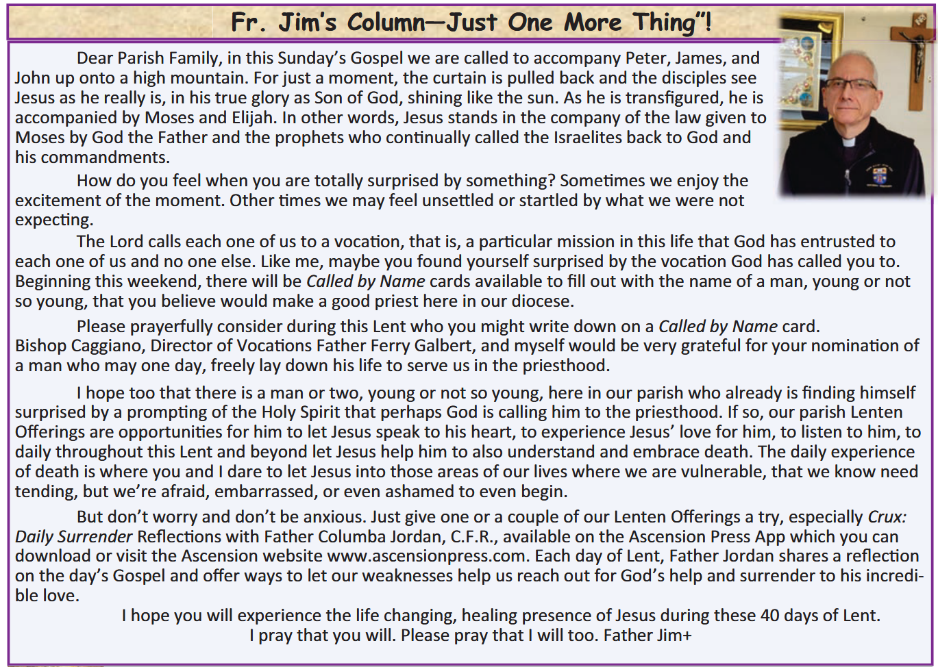 The Chapel will remain open Tuesday-Friday until 2 pm for private, individual prayer. .