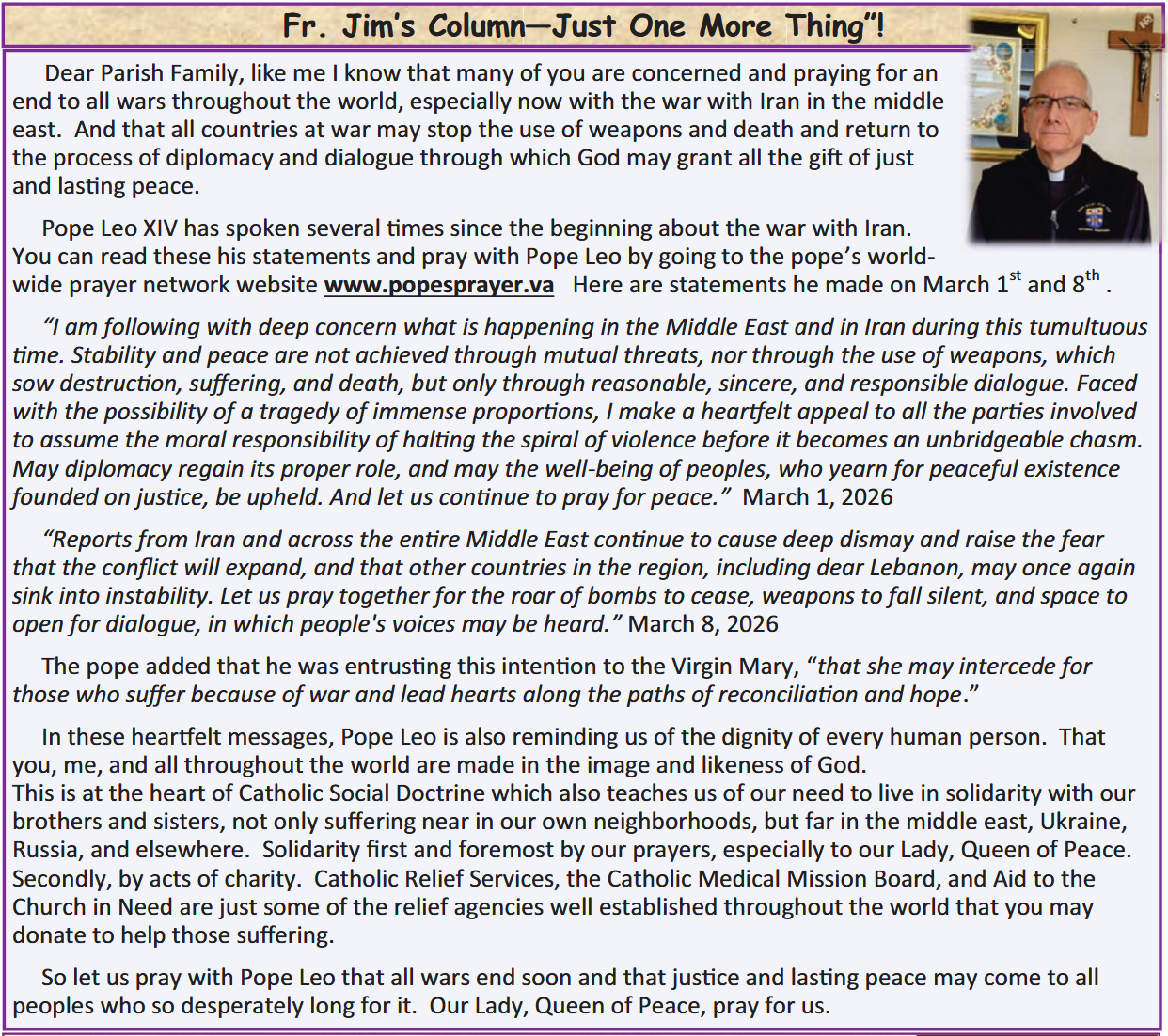 The Chapel will remain open Tuesday-Friday until 2 pm for private, individual prayer. .